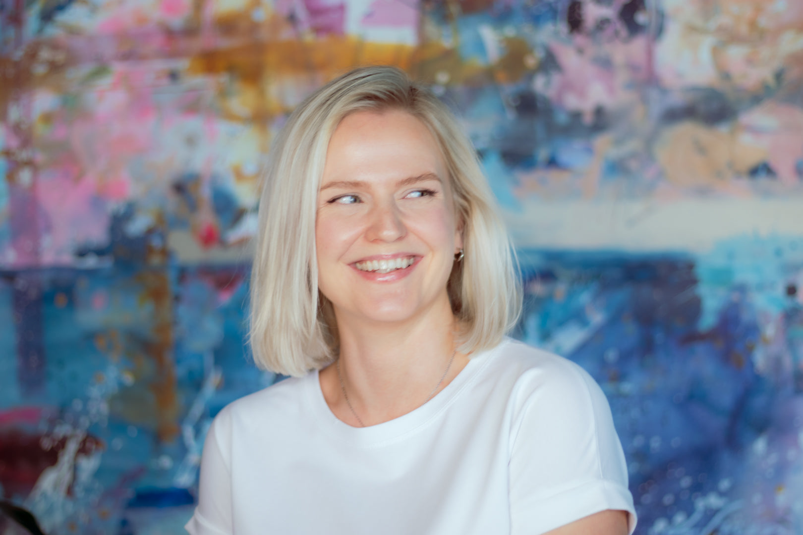 The original bold abstract paintings are hand painted by artist Lotta Sirén in Finland
