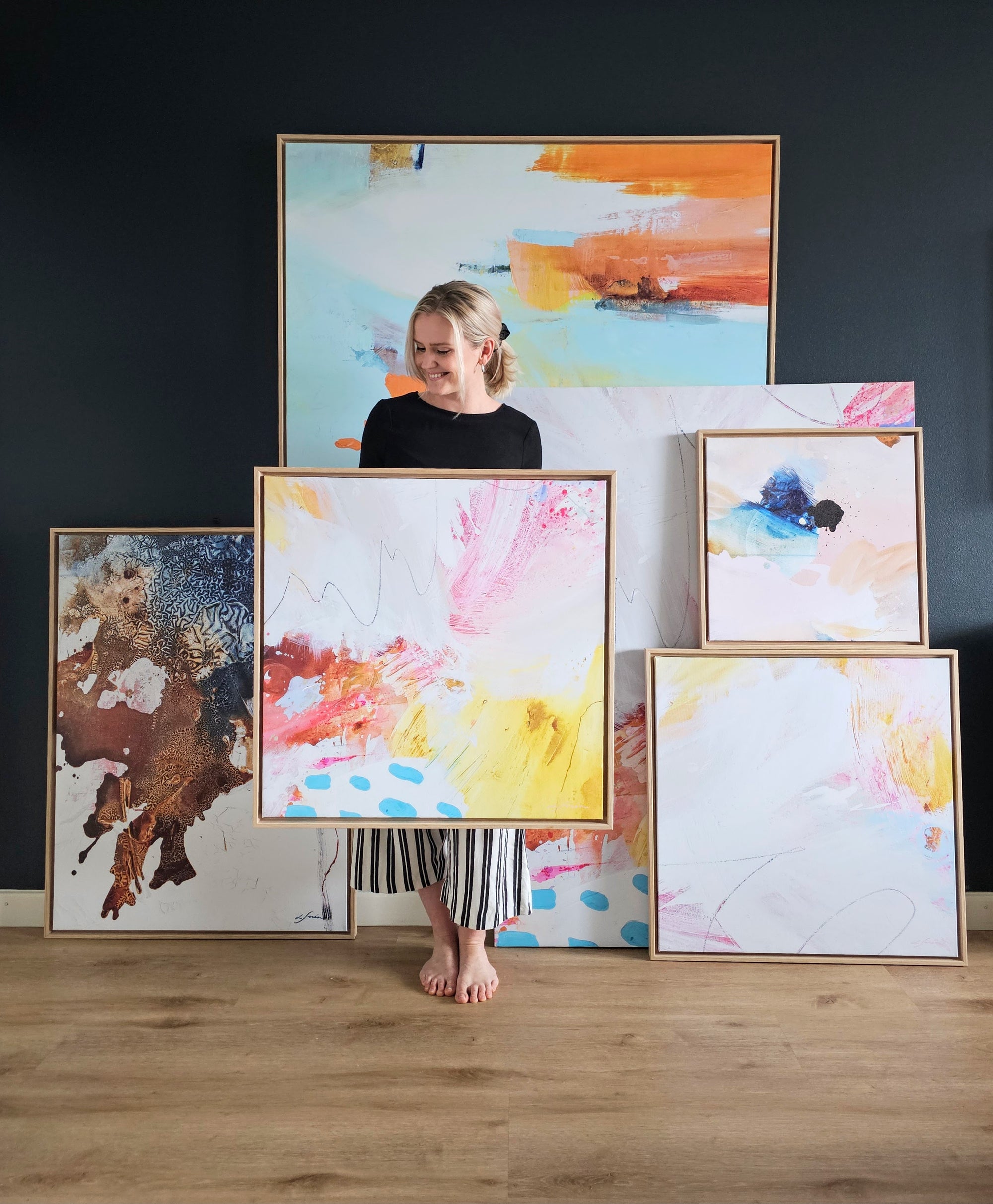 I create bold abstract paintings that celebrate being brave and free - the courage to express yourself fully and do what makes you happy.