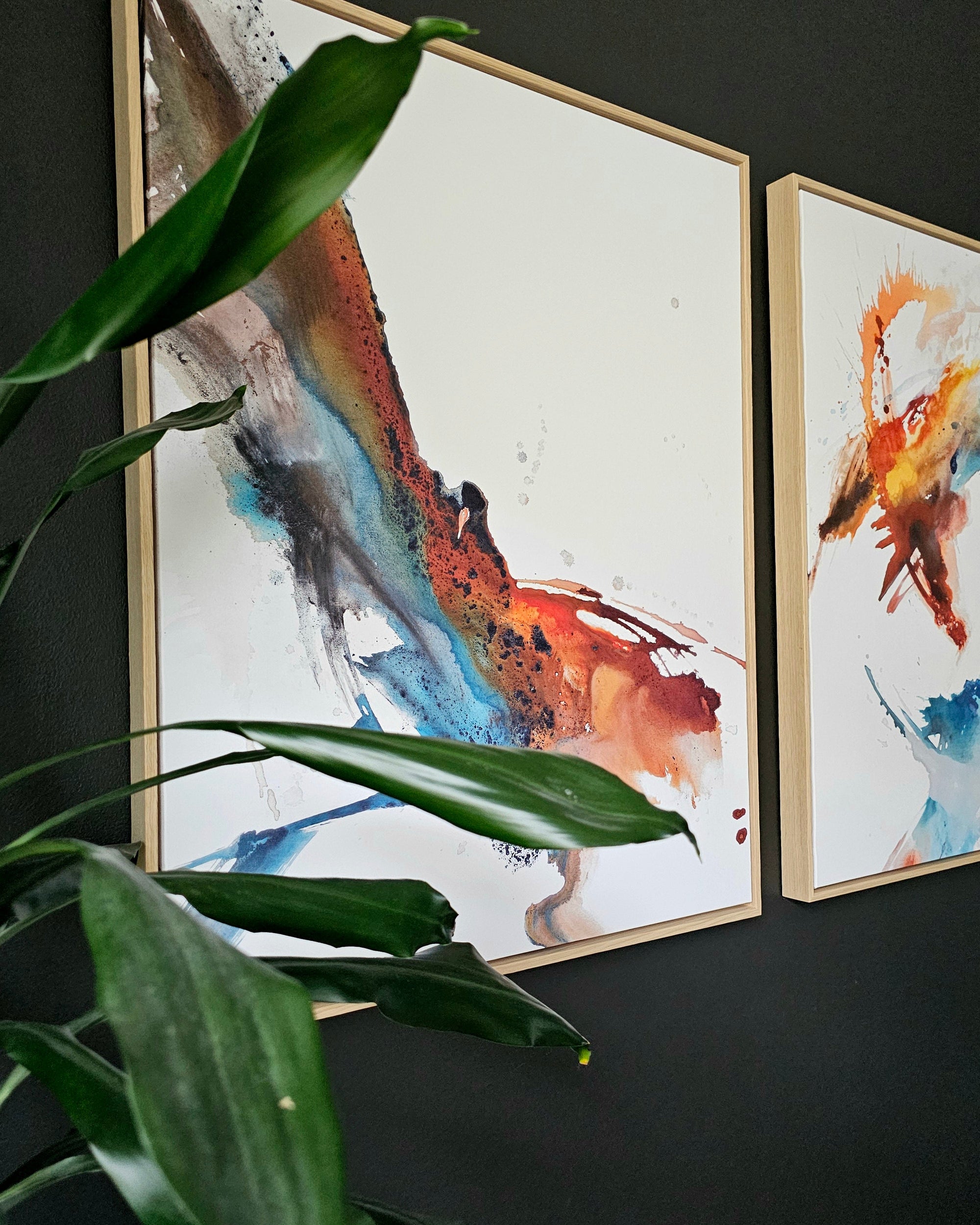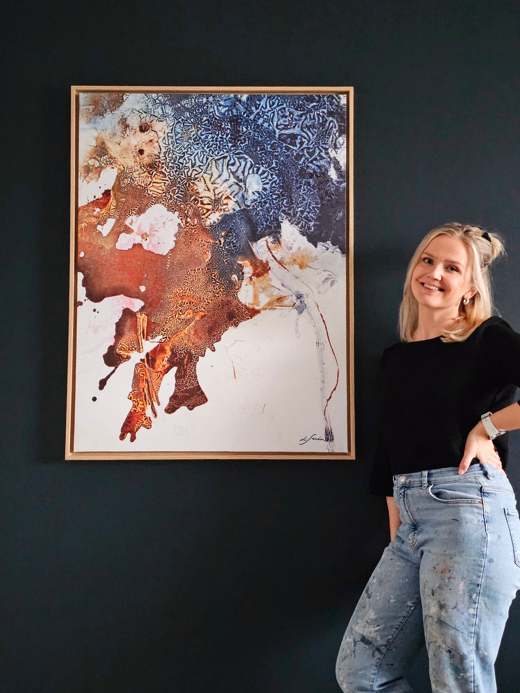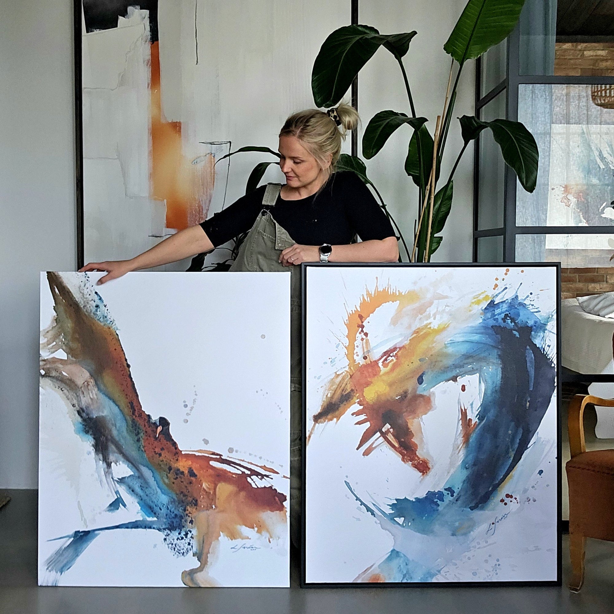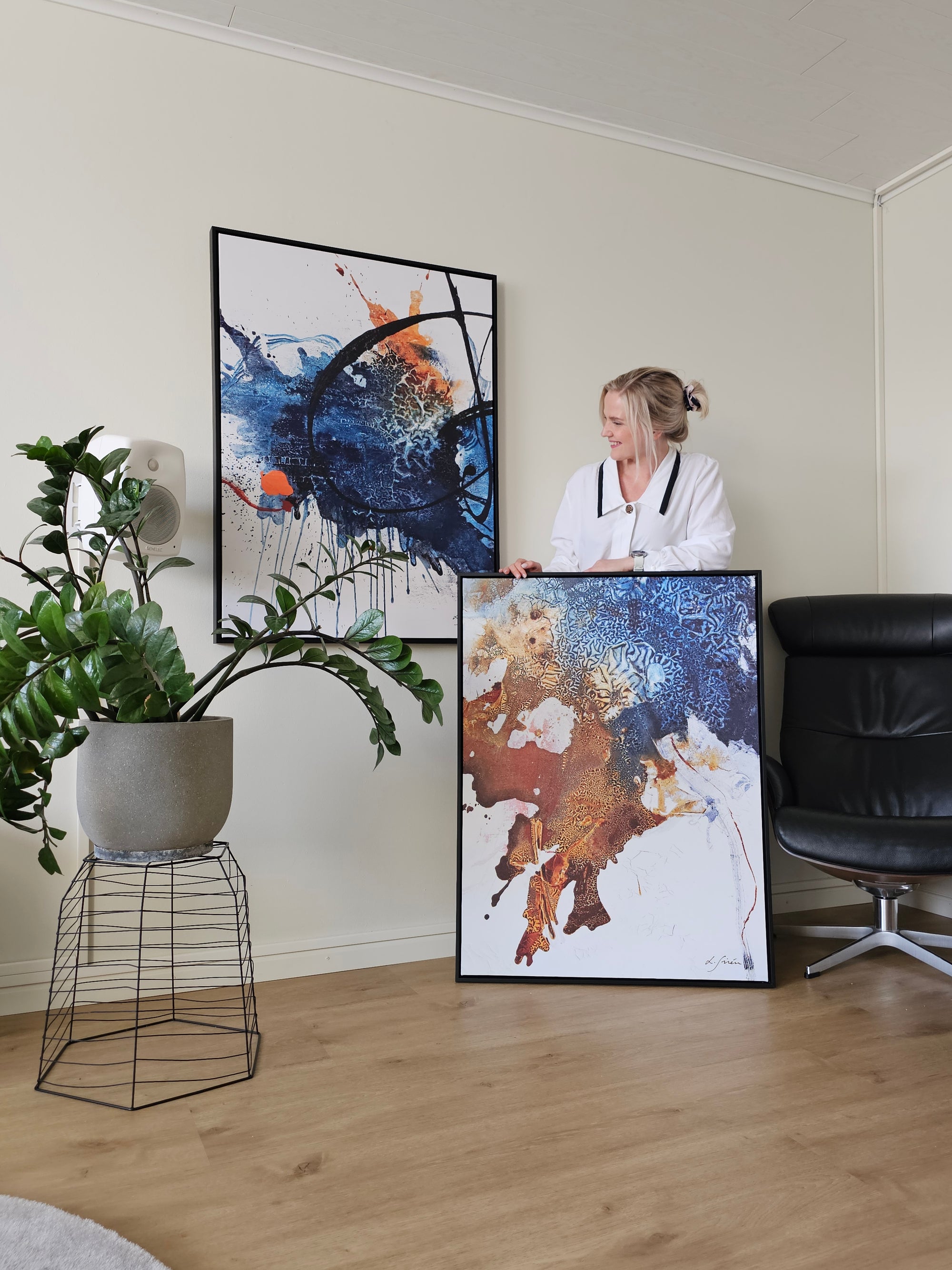 The original bold abstract paintings are hand painted by artist Lotta Sirén in Finland