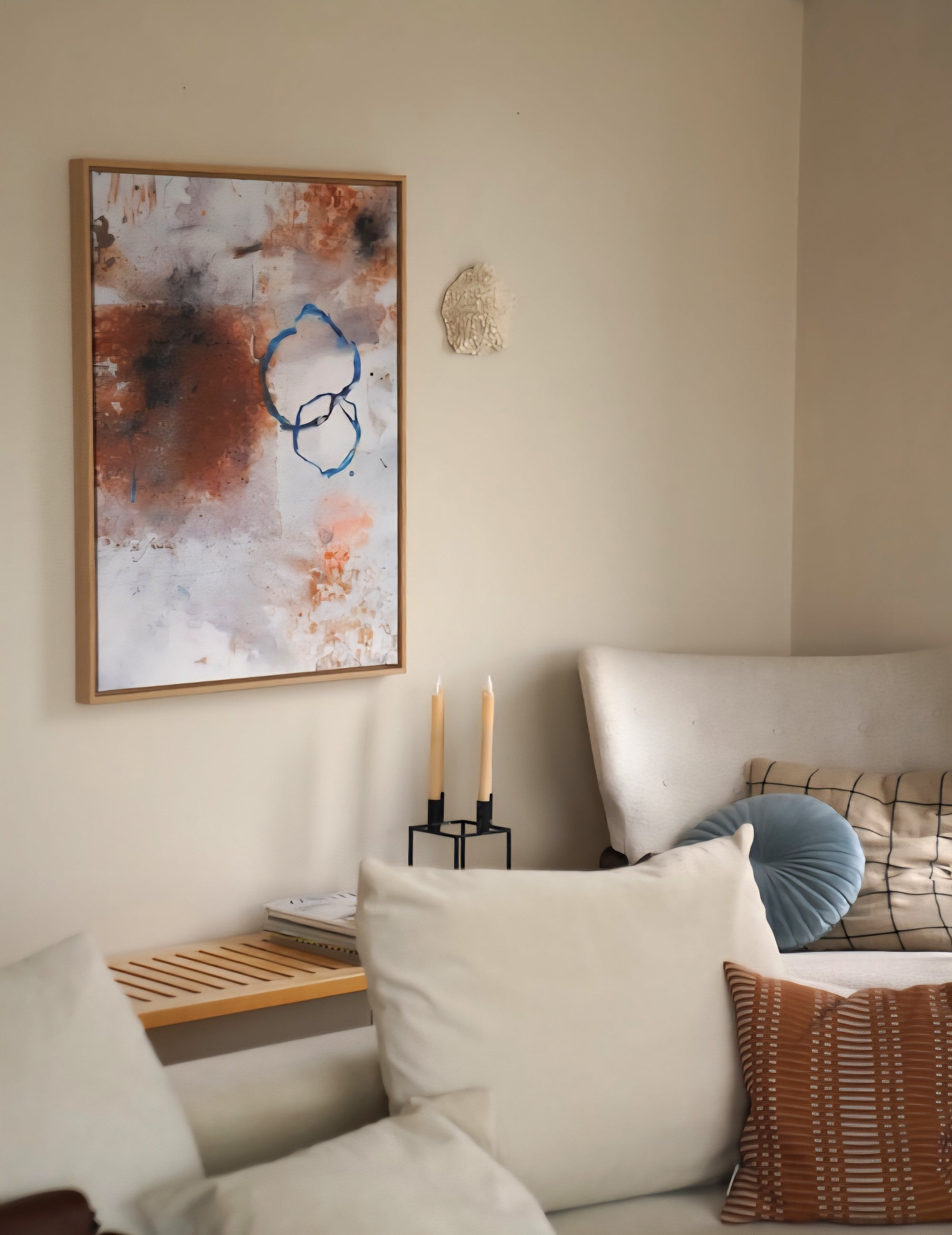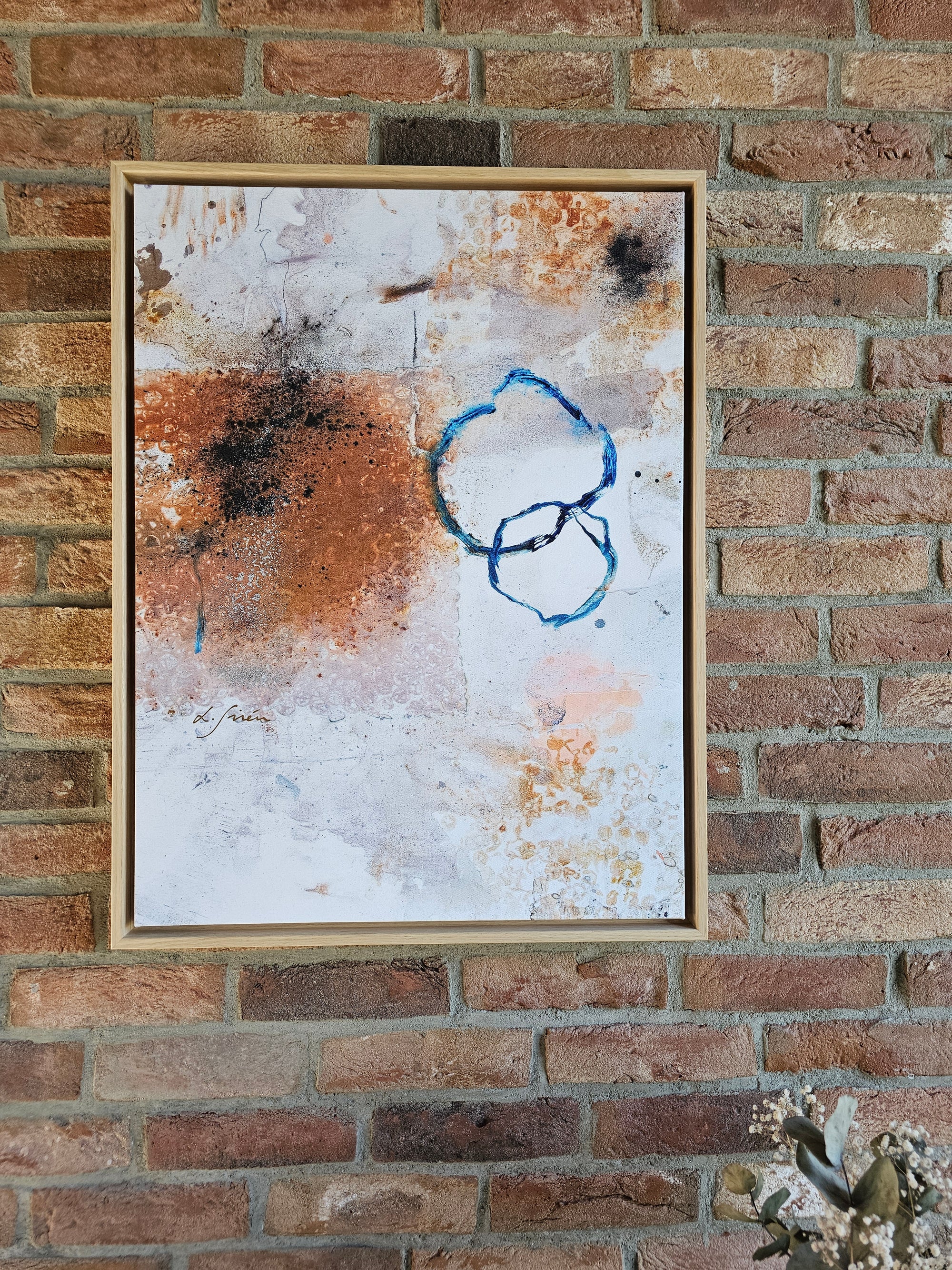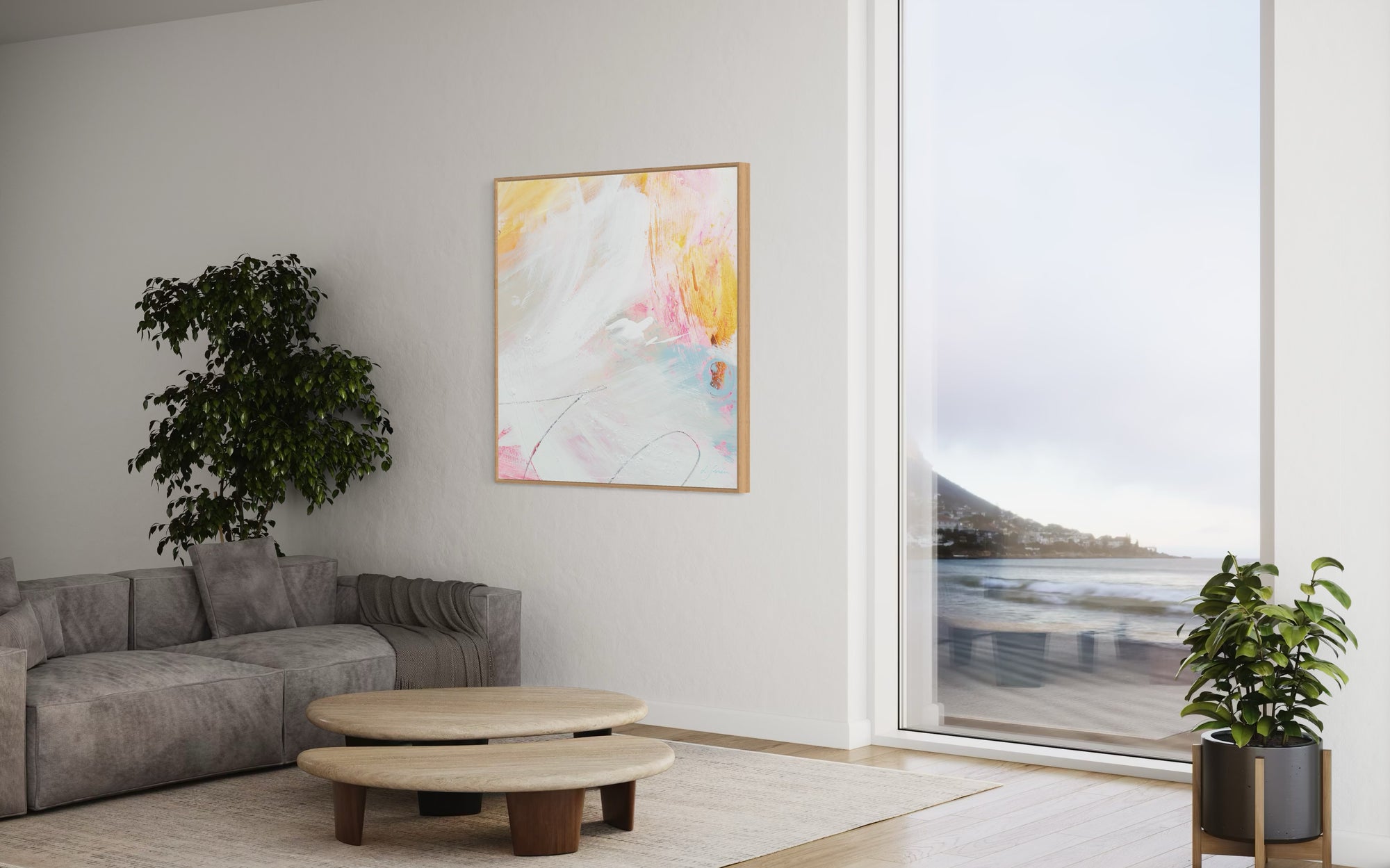 Choose unframed for a contemporary painting look or floater frame for a more luxury design finish. Wooden frames available in oak, black or white.